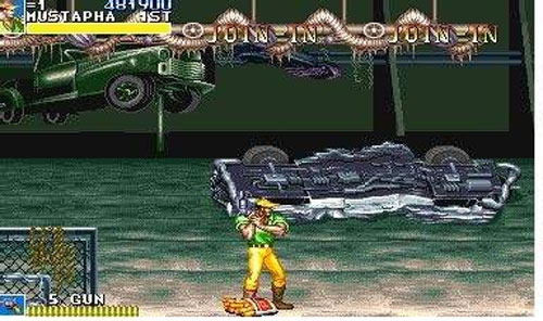 3、進入第2場景的柵欄下有隱藏寶物。最下面的摩托兵有血吃。不要最后撿一個**包對付最后場景中的那些胖子。關于**包,通關后的滯留畫面時任何武器不能撿起并使用,**包也不能撿起,但是會馬上自爆,算是可以"使用吧",游戲就是這么設定的。