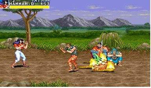 6、本關BOSS的第一形態活動性很靈活,具體方法先殺掉出來的一個小兵,越快越好,這樣就不會有其他小兵出來打擾了(尤其是猴子兵),否則哪怕兩個小兵配合靈活的BOSS對付你,心理素質差者非傷你很多血不可。這樣就可以單挑BOSS第一形態了,具體完美方法,把BOSS打出屏幕如右端后,站在距離最右端不遠不近的地方,背對著最右端不停按拳,這樣會發現BOSS正好跳到你按拳的地方,肯定被打中,然后3拳后再扔回到右端屏幕后,繼續等他跳回來……第2形態,來回的8字形跑,不用多說。