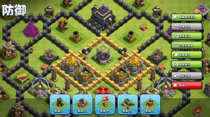 3.使用加農炮.箭塔.迫擊炮.隱形炸彈.隱形彈簧和城墻等防御設施保衛村莊。