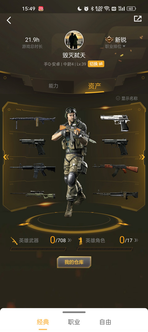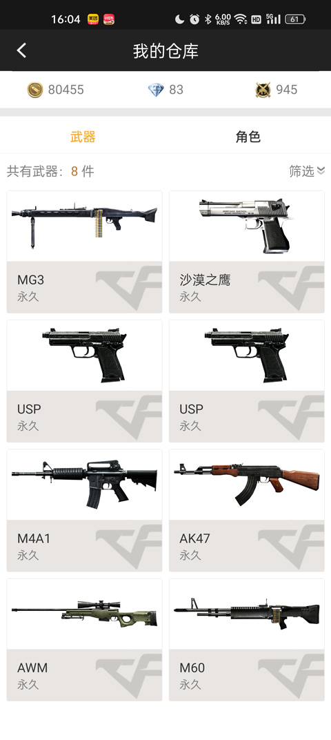 4、點擊下方的我的倉庫,就可以查看游戲中的所有游戲武器和道具了。