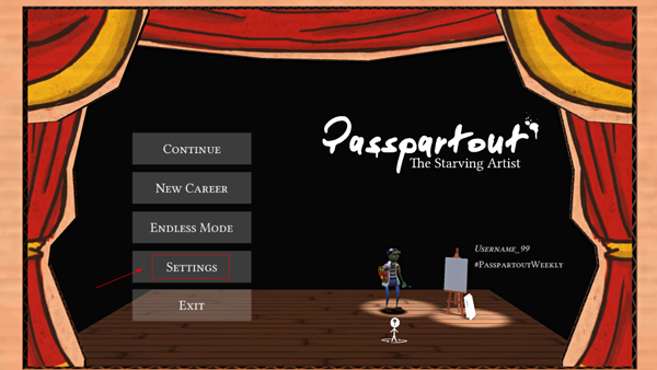 1、打開饑餓派畫家手機版,點擊首頁的“settings”打開設置;
