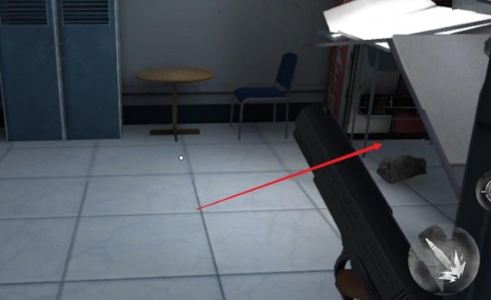 7、進入房間后,您可以在前面的桌子上找到一個杯子。用這個杯子扔喪尸,吸引喪尸的注意力。