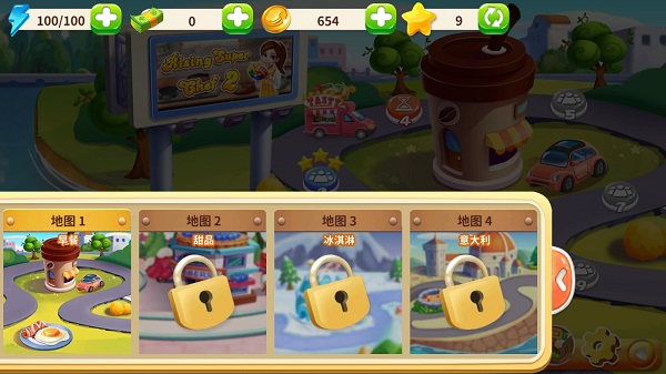 1、進入游戲后,開始第一站的烹飪管理,在這里每一關都有不同的任務目標!