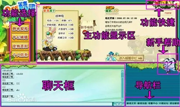 1、功能選擇:玩家可以選擇“野外探險”、“城鎮中心”、“寵物資料”、“個人信息”進行個功能的操作。