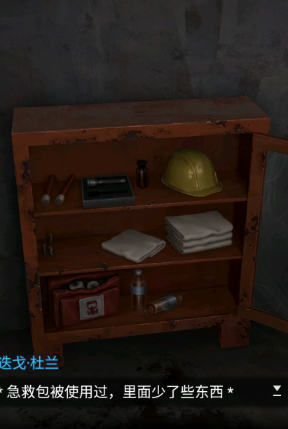 4、進入倉庫后點擊應急工具箱,發現毛巾和急救包少了