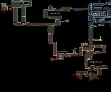 -右側進礦洞,過了第一個跳躍機關后,爬墻向上,拿商人鑰匙,右走拿超級沖刺,然后向下走掉入夢境之地,拿夢之劍,開車站回家,在商店買細膩鑰匙和簡易鑰匙和血魂碎片。