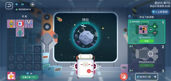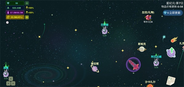 1、游戲買賣功能。買賣功能顧名思義就是不斷的買買買和不斷的賣賣賣。在本游戲里,星球的探索和發(fā)現(xiàn)是買賣功能體驗(yàn)的關(guān)鍵,每個(gè)星球都有他獨(dú)特的產(chǎn)品和外觀,至于價(jià)格嘛肯定是越到后期的越貴了。
