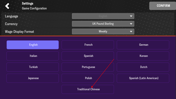 足球經理怎么切換中文