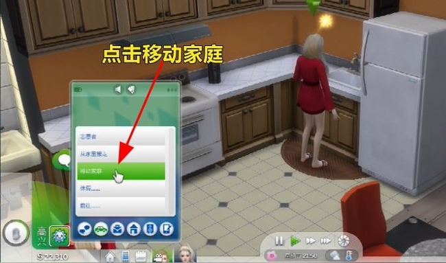 1、玩家進入游戲后,在界面點擊手機,再點擊移動家庭。