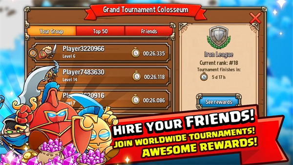 7、升級(jí)你的英雄,每勝利贏得新項(xiàng)目,讓你的英雄最大的和最強(qiáng)的。