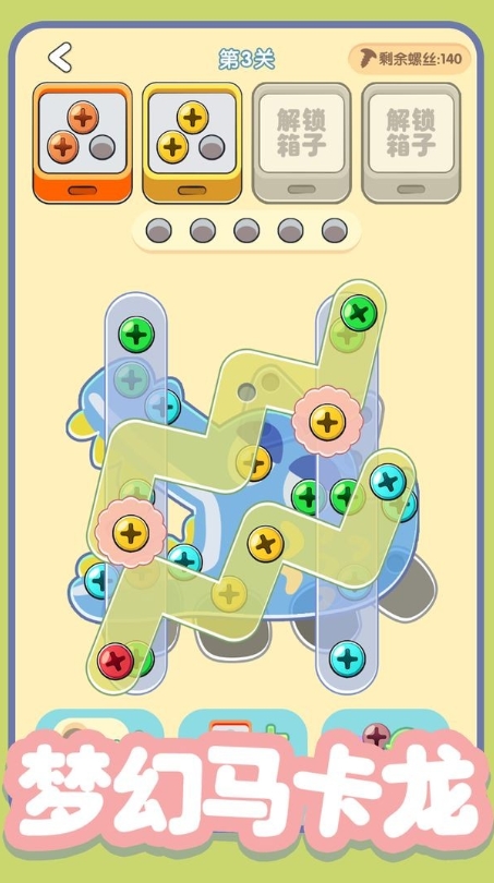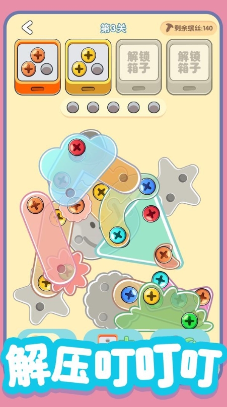 不斷進行新箱子的解鎖,這些新箱子之中將可放置其他顏色的螺絲,以保證玩家更快完成游戲;