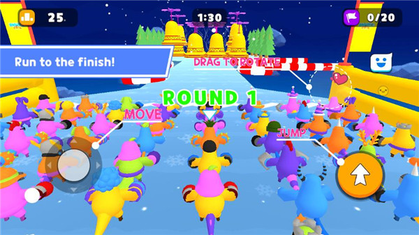 皇家派對是一款充滿樂趣的多人在線競技游戲,玩家可以選擇搞笑的角色與其他60名玩家一同參加各種闖關(guān)競賽。游戲的目標是通過淘汰對手來晉級下一輪比賽,并最終獲得冠軍。