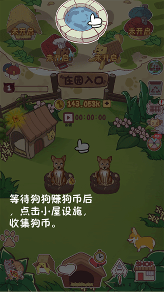 3、狗狗可以放置打工,賺夠了狗狗幣,點擊小屋設(shè)置可以收集,或是建設(shè)新設(shè)施