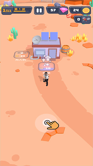 1、簡單的操作方式,進行點擊變能夠控制角色的移動,自動進行射擊,擊敗來襲的敵人
