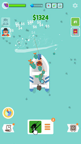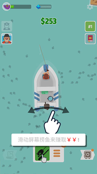 1、單指或雙手滑動屏幕,滑動屏幕可以撈魚賺錢。