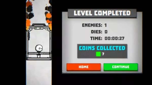 7、進入了電梯門以后就切換到了結算頁面。會有死亡次數和通關使用時間的記錄,同時也會將在關卡中吃到的綠色方塊進行結算。