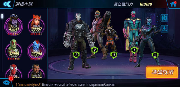 這隊沒拆buff續航力又不佳,第一波攻勢沒打出優勢還挺容易被磨死的……戰力沒撐高不好用。不過單獨拆出兩三人使用還不錯,星爵/浣熊能沿用到科技隊。