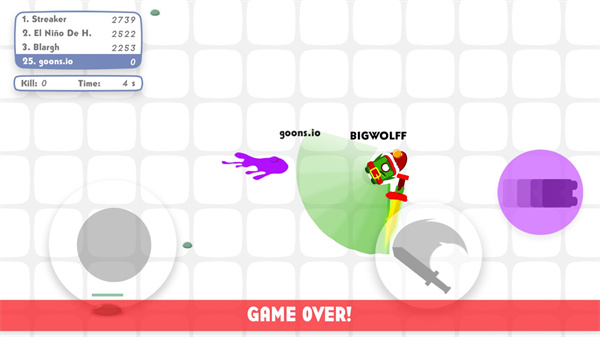 玩家在主界面點擊開始游戲按鈕,即可到英雄選擇界面,選擇合適的英雄作為本次戰斗的隊長,然后點擊在線對戰進入戰斗。個人比賽每局有20個人同時參與比賽,個人賽比拼的個人操作和走位技巧,需要在保全自身存活的條件下盡可能的擊殺更多的對手來贏得領先的積分。每局戰斗結束后,以當局排名情況獲得不同的冰淇淋和排名杯數獎勵,好的名次可以獲得更多的游戲資源,能更快解鎖或升級自己的英雄軍團