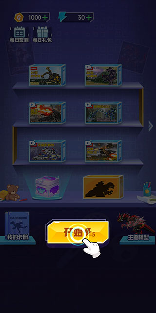 1、進入組裝機甲龍正版游戲之后,點擊下方的開始按鈕,消耗5點體力進行拼裝。