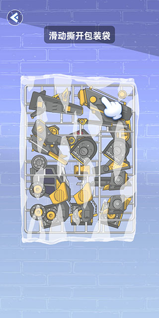 2、拼裝的第一步,首先我們需要滑動屏幕來撕開包裝袋。