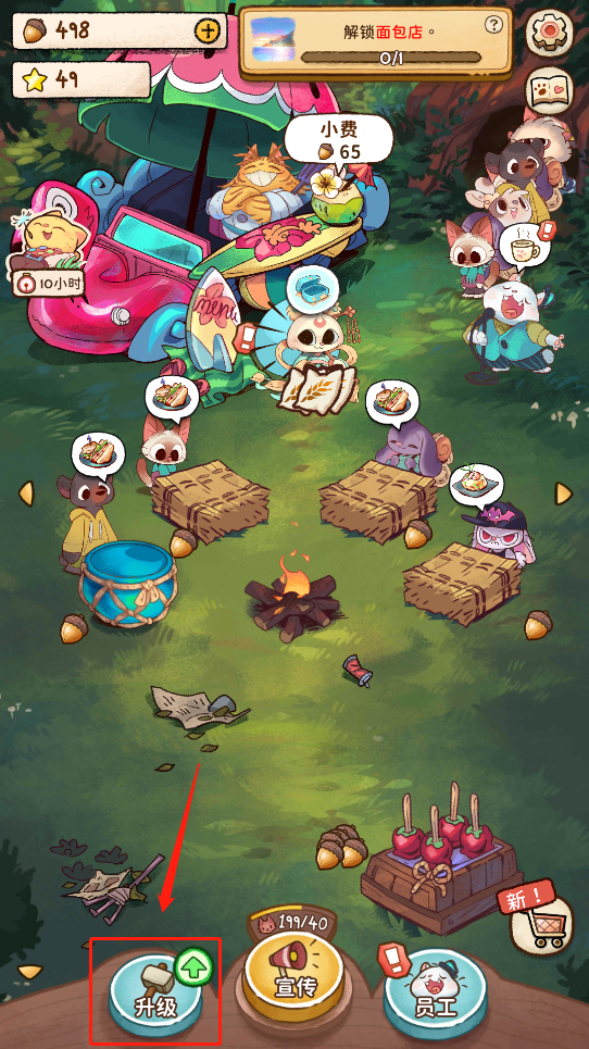 1、研發餐食并在店內銷售,升級食物并增加其屬性。