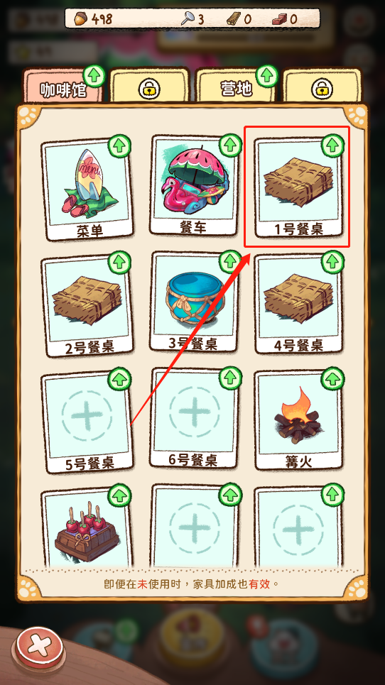 3、找到可以購買并升級的餐桌如“鼓形餐桌”,并點擊購買