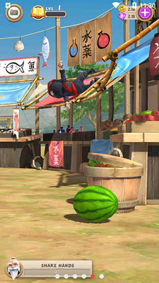 42、買西瓜去扔忍者,如果你扔的好,忍者會將西瓜擊飛的。