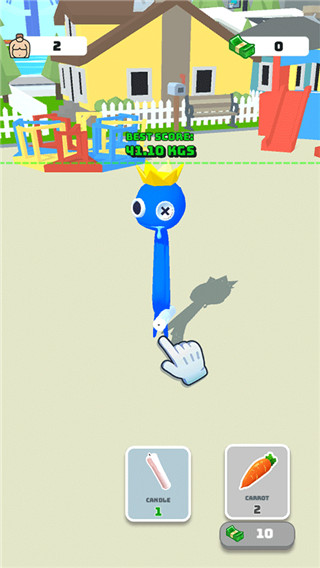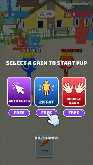 1、進(jìn)入到游戲當(dāng)中我們將扮演一名什么都吃的彩虹朋友,通過不斷的吃食物從而增加體重更好的賺取鈔票。