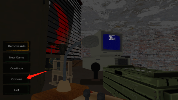1、打開在本站下載好的游戲,進入到主頁面時,點擊倒數第二行的optinos選項,這個是游戲的設置選項。