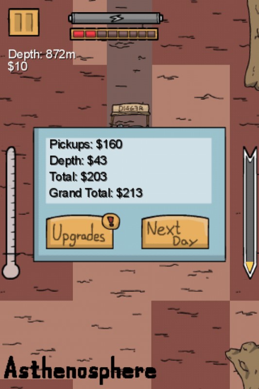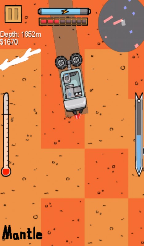 當玩家擁有一臺各項性能超強的機器時,將在挖穿13 個不同顏色、硬度、溫度的土層后抵達長城腳下!游戲中可以升級的主要內容包括鉆地機的血量、鉆頭、引擎、冷卻器、轉向以及雷達。