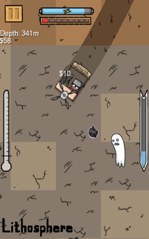 挖地機器共有4項基本屬性,分別是:可用能源、生命耐久、加速槽和溫度計。可用能源會隨著挖地時間的流逝一點點消耗,減到0時挖掘停止;生命耐久代表著挖地機器可以經受住幾次障礙物的撞擊;加速槽可以讓挖地機器擁有短暫的加速,不使用的時候會慢慢自動回復;溫度計用來測量挖地機器的內部溫度。