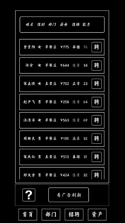 5、招聘一些廚師,每個員工都有不同的特性,你需要合理招聘