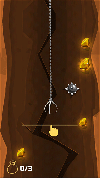 掏礦達人是一款挖礦類游戲,游戲玩法類似于我們現實中的抓娃娃玩法,玩家用手指操控鉤爪在地底抓取寶石和水晶,但是要注意躲開黑色的炸彈,否則炸彈爆炸,你將什么也得不到!收集金幣可以升級鉤爪的大小,鎖鏈的長度,用于抓取更大更深處的寶石,喜歡就趕快下載吧!