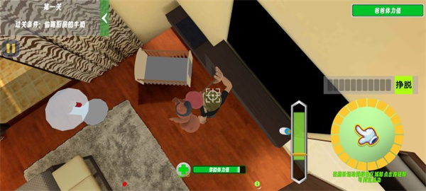 游戲中,爸爸需要不斷做家務,讓家里變得更加整潔,對一些未知問題進行了優化,讓玩家擁有更流暢的體驗,玩家的雙手需要靈活,一只手控制鏡頭方向,另一只手控制寶寶,同時為了防止寶寶鬧事,爸爸一抓到寶寶就會打屁股,玩家還可以和爸爸玩捉迷藏,看看誰更強。