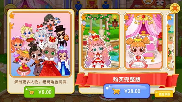 2.全新的童話冒險開啟,化身公主或者王子,自由換裝,搭配城堡建造和元素。