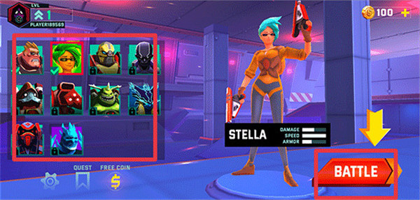 1、游戲開始前玩家首先需要選擇想要操作的英雄,隨后點擊BATTLE開始戰斗;