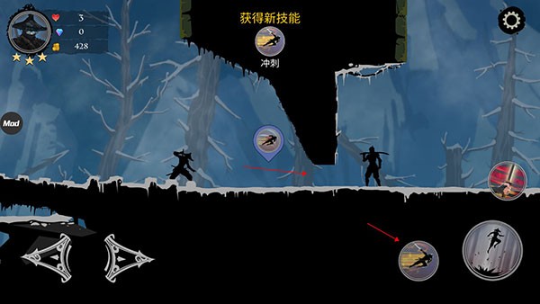 3、走到這里解鎖新技能,二連跳,使用二連跳跳過障礙,一直往前走。