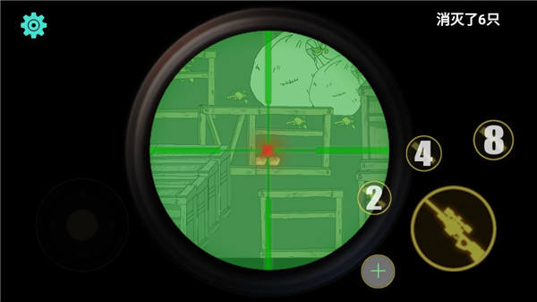 3、也不需要太多的操作性,玩家們只需要瞄準狡猾的老鼠,將其精準的擊斃即可,可以合理使用放大鏡。