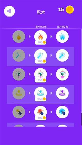 1、隨著玩家不斷的闖關,會有越來越多的忍術技能可以解鎖使用。