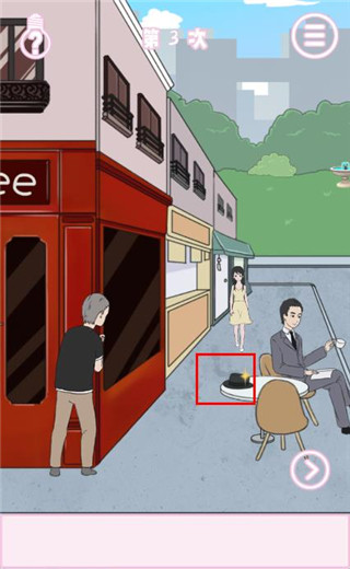 第2關:點一下女生帽子,當女生彎腰撿遮陽帽的時,取走男主角手上的智能遙控器,點一下輪盤。