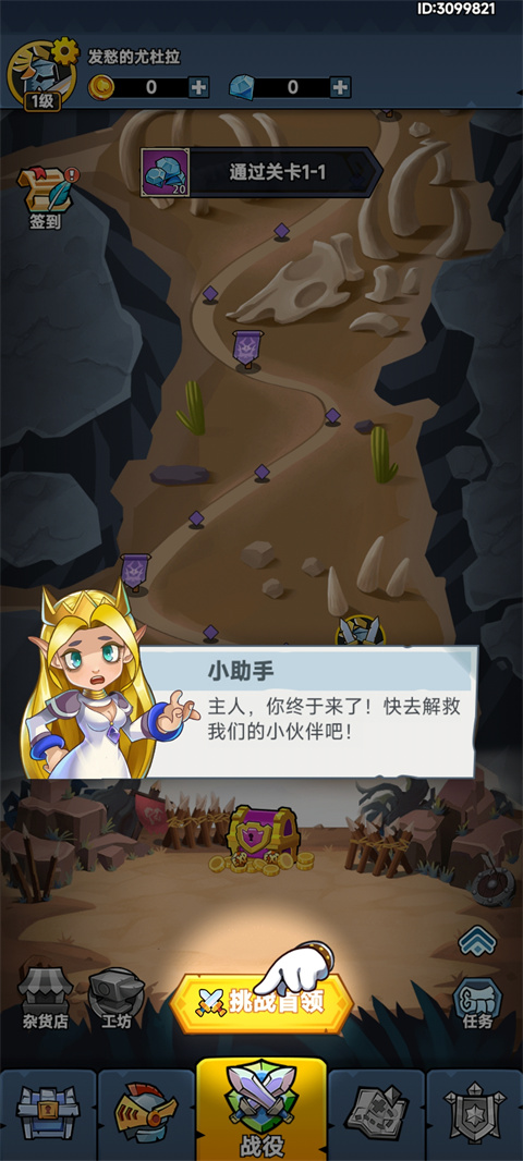 1、下載進入勇敢小騎士手游,點擊挑戰首領,解救我們的小伙伴;