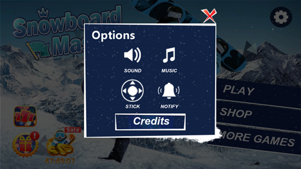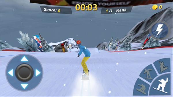 滑雪大師(Snowboard Master)是一款將速度與技術完美地結合在一起體育競速類游戲。在游戲內你可以做一些炫酷的特技如大騰空,花式旋轉等,在玩法你更可以體驗上運動員在滑行過程中左右盤旋,以此享受將健美和優雅融于一體舒爽體驗!此外,滑雪大師游戲值得注意的是以重力感應,控制游戲滑行的速度和方向,你也可以選擇設置通過按鍵來控制,不過建議是使用重力感應,這樣的話,你就可以體驗更加真實的游戲體驗。