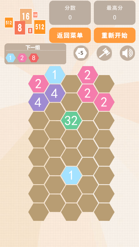 4、合體模式:2048數字求合體!沒有點策略可拿不到高分的。