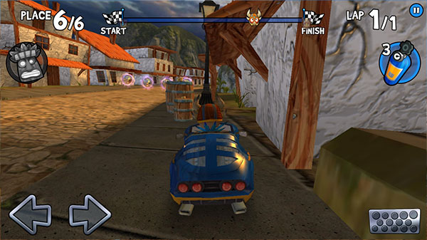 6、左右鍵控制方向,右下角是剎車,充分利用好地圖賽道,甩開你的對手吧。