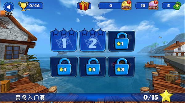 無比精致的3d卡通畫面,陽光、沙灘、蔚藍的大海、海鷗、椰樹、小屋構成了一副美麗的濱海場景,無論是塵土飛揚的沙灘還是坑坑洼洼的石頭路,特效制作都將它們打造的非常具有帶入感。