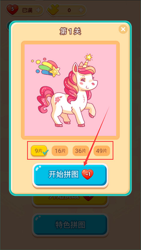 2、在進入關卡拼圖之前,我們還可以選擇拼圖難度,也就是碎片的數量,碎片越多拼圖的難度也就越高;