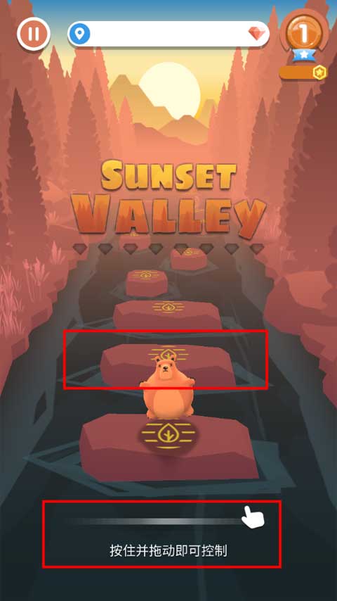 2、玩家需要按住并拖動即可控制小熊,左右用來控制角色的方向,按住用來確保角色持續跳躍。