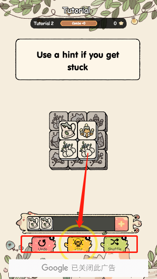 3、當(dāng)然我們可以看得再長(zhǎng)遠(yuǎn)一點(diǎn),如下圖這種情況,即便明面上兩張卡牌都不夠3張,但是我們就能夠按照順序點(diǎn)擊直接消除2組卡牌。如果實(shí)在沒有可以消除的卡牌的話,我們也可以使用位于最下方的3種作弊道具,最終達(dá)成通關(guān)。