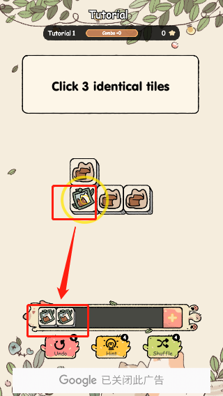 1、首先玩家們?cè)邳c(diǎn)擊上方卡牌后卡牌會(huì)下移到底部的框中,欄框內(nèi)一共可以儲(chǔ)存7張卡牌,當(dāng)有3張一樣的卡牌時(shí)將會(huì)消除,如圖中點(diǎn)擊上方的貓咪相框則可以達(dá)成三消。