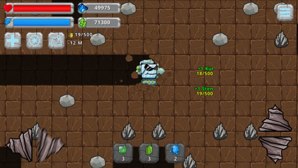 1、總體來說,游戲的玩法還是比較實在的,通過向左、向右和向下挖掘,向上可進行火箭上升,期間這些操作都需要挖掘機耗能。游戲以探索地底世界,獲取販賣地底的稀有資源為目標,由此往復(fù)來改裝升級你的挖掘機。